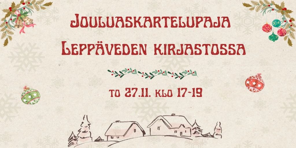 Tervetuloa Leppäveden kirjaston jouluaskartelupajaan, jossa pääset askartelemaan ripustettavia joulukoristeita ja joulukransseja kierrätysmateriaaleista.