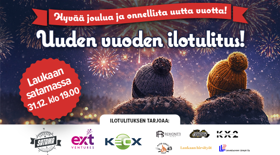 Mikäpä sen parempaa kuin käynnistää uuden vuoden vastaanotto näyttävällä ilotulituksella. Tervetuloa Laukaan satamapuistoon!