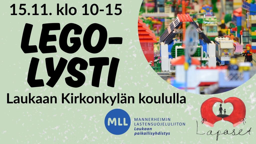 Tervetuloa mukaan huikaisevaan LEGO-tapahtumaan! Laukaan Kirkonkylän Vanhempainyhdistys ry ja MLL Laukaa ry järjestävät yhdessä huikaisevan koko perheen LEGOLYSTI-päivän Laukaan kirkonkylän koululla.
