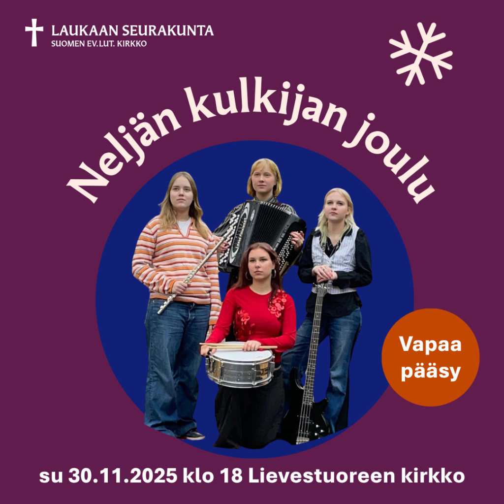 Matkamme kulkee jylhien suomalaisten sävelmien, kuten Sylvian joululaulun siivin aina muinaisten aikojen tunnelmiin, harmonikan, huilun, laulun ja muiden soittimien säestämänä. Tulkaa mukaamme! Konserttiin on vapaa pääsy.
