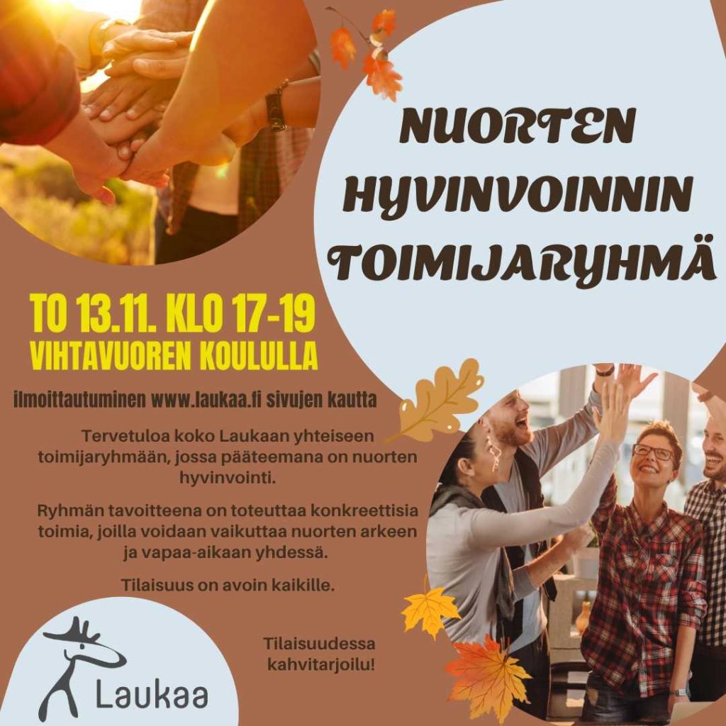Tervetuloa koko Laukaan yhteiseen toimijaryhmään, jossa pääteemana on nuorten hyvinvointi!