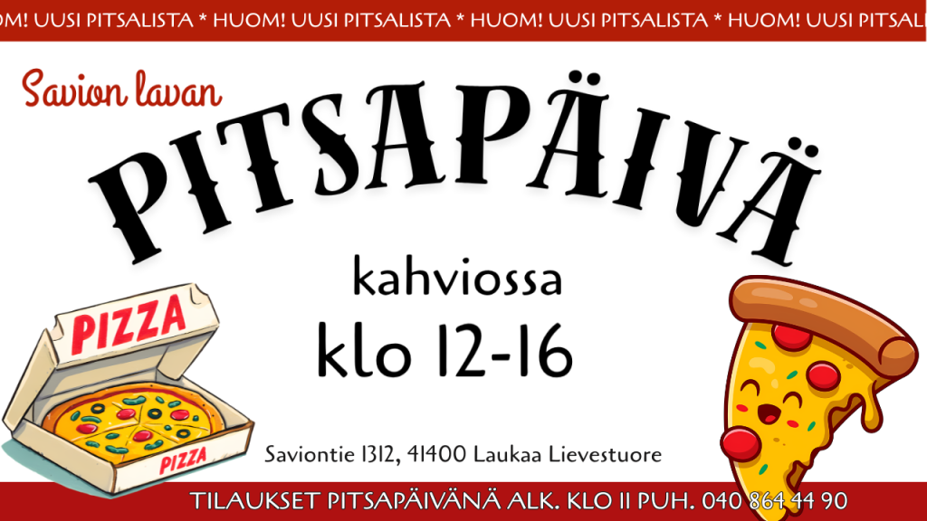 Savion lavan kahviossa järjestetään pitsapäivä lauantaina 18.4. klo 12-16