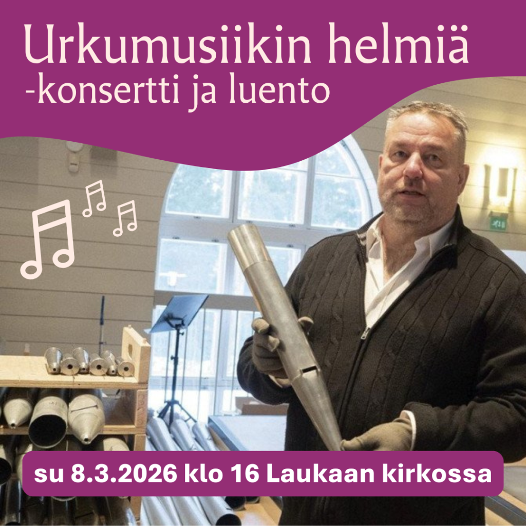 Urkuasiantuntija Marko Koskinen konsertoi ja kertoo tammi-helmikuun aikana toteutetusta Laukaan kirkon urkujen puhdistuksesta. Konsertissa kuullaan urkumusiikin helmiä.